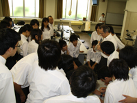 いずれも、2年生30人の参加で、B講義室での講義の後は、場所を顕微鏡実習室に移し、バーチャルスライドを使っての珍しい実習が行われ、生徒たちはミクロの世界に入り込み、熱心に細胞などを観察していました。