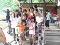 内容は、流しそうめん、バーベキュー、魚釣り、キャンプファイアー、木工作り、バームクーヘン作りと盛り沢山で、患児、御家族、ボランティアが一体となり、大変素敵な時間を過ごすことができました。