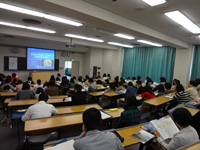 今年は去る10月29日(土)に、放射線部 高橋病院教授を講師に「身体の中を覗いてみよう:画像診断の現在」というテーマで体験授業を開催しました。当日は、県内外から高校生、保護者等合わせて73名の参加がありました。参加者の中には遠く関東や九州から足を運ばれた受講生もおられ、大盛況でした。