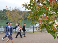 今年は、月輪会員とそのご家族、またスタッフからは医師・看護師・栄養師・リハビリテーション科・事務を含め幅広い分野より22名が参加しました。軽運動をとりいれることで、心身のリフレッシュをはかることを目的に、滋賀医大を出発点に文化ゾーンからふれあい広場一帯をめぐる初心者コース(約3.5km)と、名神高速道路の上を渡り一里山の瀬田公園体育館をめざし、アップダウンの道を行く健脚コース(約7km)の2コースにわかれ、それぞれのチームが秋の風景を楽しみつつ無事、滋賀医科大学へ帰着しました。約2時間のウォーキングの後は、栄養治療部がたてた献立による昼食会でさらに親睦を深めました。また、ウォーキングの前後で血糖値の違いがあるかを測定しました。