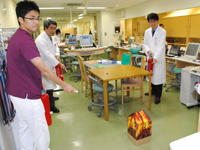 本年度は、災害時参集訓練として、午前7時に琵琶湖西岸を震源とする震度5強の地震発生を想定した、勤務時間外緊急時通報連絡網による連絡、災害対策本部の設置及び本部要員参集、並びに附属病院職員出動の各訓練を早朝より行い、また、地震防災訓練として、午後2時30分に琵琶湖西岸断層帯で発生した震度7の直下型地震発生を想定した、地震発生時安全確保、災害対策本部設置、患者・学生等避難誘導、負傷者の応急処置及びトリアージ、初期消火、自衛消防隊出動、被災状況通報等の各訓練を総合的に行いました。