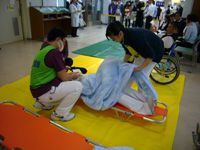 2)負傷者応急処置・トリアージ訓練(附属病院玄関)