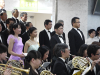 病院再開発事業が今年3月に完了したことを記念して、4月28日(土)に病院玄関ホールで医大の卒業生や市民らでつくる交響楽団「セタフィルハーモニックオーケストラ」と合唱団「びわこアーベントロート合唱団」の共演で病院再開発完成記念コンサートを開催し、ベートーベン作曲の「歓喜の歌」が披露されました。