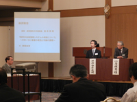 基調報告では、柏木厚典病院長の進行により、「脳卒中地域医療システムの構築について〜BIWA-BAC事業の現況と今後の課題〜」を議題に、「三方よしの取組から」を滋賀県医師会代議員会副議長の小鳥輝男先生に、「滋賀県における脳卒中地域連携について」を本学脳神経外科学講座の野葺a彦教授に各々ご報告いただき質疑応答が行われました。