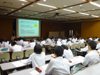 初日は、服部副学長から「近隣の高校でもあり、是非本学への進学を目指してください。」との挨拶がありました。