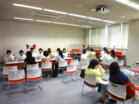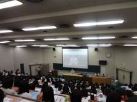 午前中は、学長の挨拶に続き、大学の概要を映像で紹介、入試情報やカリキュラムの説明を行った後、看護学科・基礎看護学講座の足立みゆき教授による「『人』として育てる大学教育」と題した模擬講義を行いました。