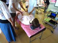 午後からは4つのグループに分かれて、看護学科棟の3階と4階にある実習室を見学実習(体験を含む)として回り、例年同様、大好評でした。また、見学実習の時間中、瀧川看護学科長の進行により「教員と保護者との懇談会」も実施しました。