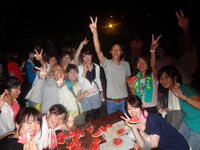 内容は、流しそうめん、バーベキュー、花火、木工作り、バームクーヘン作りと盛り沢山で、今年は子供達のリクエストで肝だめしも行いました。本学の医学生、看護学生を中心としたボランティアが一丸となり、難病を克服した子供達と素晴らしい時間を共有できました。また参加者の子供達も回を増す毎に各々の絆が深まっていると感じました。