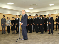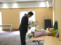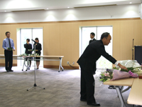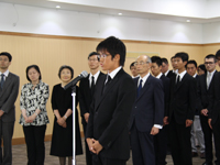 嶋岡君の御家族、馬場学長、顧問の内科学講座藤山教授、OB他関係者約40名が列席し、馬場学長や藤山教授、主将の医学科3年 九住 龍介君から、嶋岡君を偲び、追悼の言葉が述べられました。その後、全員で献花・黙祷を行い、最後に嶋岡君の御家族から「息子の事故を教訓として安全対策を心掛けてほしい」とお話しがあり、列席者一同、命と安全対策の大切さを改めて考える機会を持つことができました。