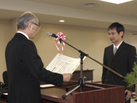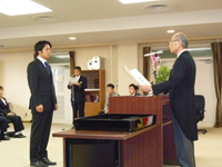 平成24年度第1回滋賀医科大学学位授与式が10月1日(月)に本学管理棟大会議室で挙行され、課程博士5名、論文博士3名、修士1名にそれぞれ学位記が授与されました。