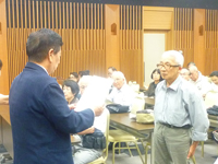 また、恒例により3回のうち2回以上受講いただいた方々には修了証書をお渡ししており、最終日には、服部副学長から代表の方にお渡ししました。
