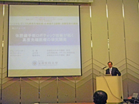 嘉田由紀子滋賀県知事の主催者挨拶があり、多数の出席者で盛況に行われました。本学からは、外科学講座 谷 徹教授が第2グループを代表して「体腔鏡手術ロボティック技術が拓く高度先端医療の研究開発」について、事業成果報告を行い、多数の出席者が聴講しました。
