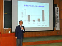 本学からは、睡眠学講座 宮崎総一郎特任教授が基調講演「睡眠の役割」を行い、眠りのメカニズム、睡眠と仕事、学習、生活習慣病やこころの病との関係について、わかりやすく、おもしろく説明されました。
