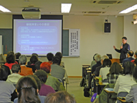 平成25年3月23日(土)に、知の連携プロジェクト実行委員会(滋賀医科大学、龍谷大学、立命館大学、大津市、草津市、滋賀県)の主催により、県立長寿社会福祉センターにおいて、びわこ文化公園都市 知の連携プロジェクト「健康寿命の延ばしかたセミナー」が開催されました。