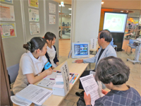 5月10日に、「看護の日」のイベントをショッピングモール フォレオ大津一里山セントラルコートで開催しました。病院の各部署紹介などのポスター展示のほか血圧測定、血管年齢&ストレス測定、骨密度測定などを13時から16時まで行いました。測定コーナーには延べ360名を超える方々の参加をいただき、市民のみなさまの健康意識の高さをうかがうことができました。また、がん看護、感染予防、ストレス相談やAEDの実演をそれぞれの分野の専門・認定看護師が行いました。
