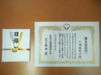 | 学会賞授賞式にて(左から2人目:小嶋助教) |
