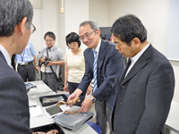 その後センター内の見学会が行われ、杉原解剖センター長、相見准教授の案内で、展示品やバーチャルスライドシステムについての説明を受けました。