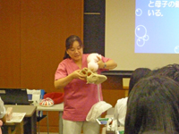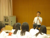 2日目は、臨床看護学講座(母性看護学・助産)准教授立岡先生から、「思春期から見た女性の健康」と題して講義があり、赤ちゃんの出産時のスライドには、皆興味深く見入っていました。