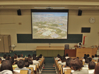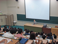 学長の挨拶に続き、大学の概要を映像で紹介し、入試情報や求める学生像などの説明を行いました。その後、病理学講座・伊藤准教授による「人類はインフルエンザとどうつきあうか?」と、外科学講座・谷教授による「医学部とは −命にかける総力戦−」と題した二つの模擬講義により、大学での授業を短時間ながら実際に体験していただきました。