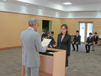7月26日(金)、平成25年度滋賀医科大学奨学金授与式をクリエイティブモチベーションセンターにて行いました。この制度は、毎年度、第2学年以上の学部学生を対象に、前年度の成績優秀者を各学科・各学年から1名ずつ選出し、月額5万円の奨学金を1年間支給するものです。