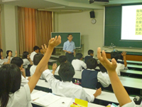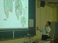 その後生協食堂で昼食をとり、午後からは医学科志望、看護学科志望の二手に分かれ、医学科は解剖学講座(生体機能形態学部門)宇田川教授から「呼吸器系の仕組みと病気」と題し、また、看護学科では、基礎看護学講座足立教授から「看護学とは何か?」と題し、それぞれ熱心に模擬授業が行われました。