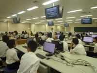 彦根東高校は文部科学省のSSH(スーパーサイエンスハイスクール)指定校となっており、今回その事業の一環として、将来医学科や看護学科への進学を考えている生徒35名(第1学年27名、第2学年8名)が、去る8月5日(月)に同校濱川教諭他1名の引率の下、本学を訪問しました。