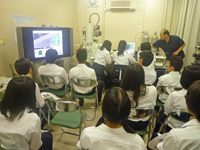 午後からは病理学講座(分子診断病理学)教授の杉原 洋行先生から「がんからみた医学」と題し講義室での授業があり、その後顕微鏡実習室に場所を移動してがんの組織をバーチャルスライドで見学しました。
