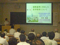 そこで、平成25年9月3日(火)、国際基準に対応した医学教育認証評価制度の発足に尽力されている東京医科歯科大学の奈良信雄教授を講師にお迎えし、臨床講義室1において「国際基準に対応した医学教育について」の講演会を開催しました。