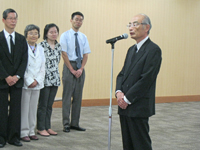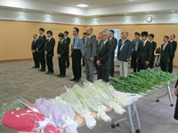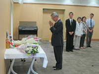 嶋岡君の御家族、馬場学長、OB他関係者約40名が列席し、馬場学長より、追悼の言葉が述べられ、ヨット部主将の医学科3年 礒田 翔 君からは、部活動の安全対策を徹底し、事故を二度と繰り返さないと誓いの挨拶が行われました。その後、全員で献花・黙祷を行い、最後に嶋岡君の御家族から今後のヨット部がますます発展するよう、激励のお言葉を頂きました。