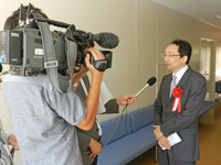 | NHKの取材に応じる三浦センター長 |