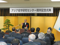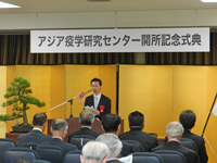 滋賀医科大学では、10月1日(火)、全国初の疫学研究センターとなる「滋賀医科大学アジア疫学研究センター」の開所記念式典を挙行し、学内外の関係者約100名が出席しました。