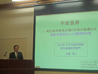 テーマは、『アンチエイジング〜若さを保つためには〜』とし、10月31日は、泌尿器科学講座の荒木勇雄准教授による「排尿障害の治療とアンチエイジング」、11月7日は、生化学分子生物学講座の小島秀人教授による「再生医学研究が描く未来の医療とは」、11月14日は、歯科口腔外科の村上拓也助教による「アンチエイジングにおける口腔ケア」の講演を行いました。