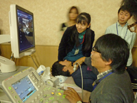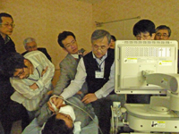 当日は、本学家庭医療学講座の三ッ浪教授の司会・進行により、自治医科大学附属さいたま医療センター総合医学第1講座 准教授 尾本きよか先生を講師に招き、『プライマリケアのための超音波検査−頸部から下肢まで』と題し、プライマリケアに必要な頸部(甲状腺、リンパ節等)、頸動脈、心臓、腹部(肝・胆・膵・脾・腎等)、下肢血管系、皮膚・皮下など全身の超音波検査について講義していただきました。それぞれの講義のあとに、実際に参加者に超音波検査を体験していただきました。