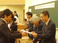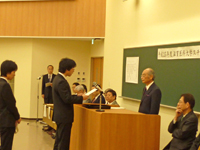 学生代表への認定証書交付の様子 |