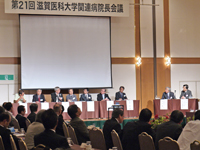 6月26日(木)、ロイヤルオークホテルにおいて第21回滋賀医科大学関連病院長会議を開催し、来賓、県内外関連病院長、学内関係者の合計155名にご出席いただきました。