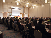 休憩後のパネルディスカッションでは、村田喜代史副病院長と永田 啓教授の進行により、滋賀県立成人病センター総長の笹田昌孝先生から「滋賀県医療情報連携ネットワークのめざすもの」の演題で発表が行われ、滋賀県が取り組んでいる“びわ湖メディカルネット”についてのご説明をいただいた後、本学永田 啓教授から「滋賀県医療情報連携ネットワークの構築状況について」、本学総合外科学講座の来見良誠教授から「東近江総合医療センターと滋賀医大病院との連携状況について」、本学医学部附属病院患者支援センター長の前川 聡教授から「滋賀医科大学患者支援センターの現状について」、大津赤十字病院副院長の大野辰治先生、市立長浜病院長の多賀俊明先生、長浜赤十字病院長の濱上 洋先生からは「各機関における取り組み状況について」をそれぞれご発表いただきました。