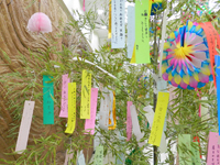 附属病院玄関ホールにて七夕の飾り付けを行いました。