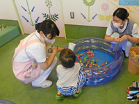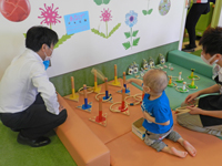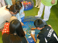 プレイルーム内にはスーパーボールすくい、わなげ、ボウリングコーナーなどが設けられ、にぎやかに遊びに興じていました。また、景品が当たるものもあり、患児さんたちは嬉しそうにおもちゃなどを受け取られ、楽しい思い出を作ることができました。