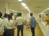 今井診療放射線技師長、牛尾主任診療放射線技師からCT装置や画像について、吉田臨床検査技師長から病院における検査システムについて、平岩リハビリテーション部副技士長からリハビリテーション部での活動について、それぞれ説明を受けました。