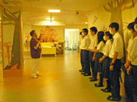 5A病棟では、川根看護師長から小児科病棟に描かれた「瀬田の森」について説明を受け不思議な世界に感動していました。