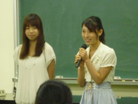実習に先立ち、堀池副学長からミニ講義があり、続いて、同校の先輩である医学科第2学年の 河原 早苗さん、藤井 麻梨子さんから、「先輩からの一言」として自身の受験対策や本学の魅力について話がありました。