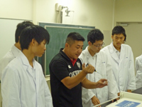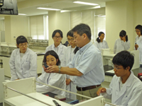 この実習は、実験をスムーズに進めるため常時受講中の生徒を31名に絞って実施することになり、4人の教諭とともに本学を訪問しました。