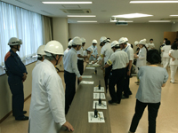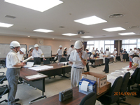 最後に、消防署員の指導による水消火器を用いた操作訓練と屋内消火栓の放水訓練を行い、消火器や屋内消火栓の仕組みや使い方、使用上の注意等について理解を深めました。