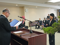 学長より最優秀賞を病理学講座 仲山 美沙子 助教に、優秀賞を女性診療科 竹林 明枝 助教及び社会医学講座 近藤 慶子 特任助教の2名に授与しました。