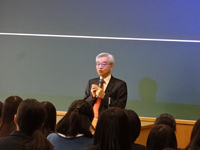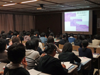 今年は10月25日(土)に、臨床検査医学講座 九嶋教授を講師に「胃がんをとりまく人々」というテーマで開催しました。当日は、地元の滋賀県をはじめ近畿を中心に県内外から高校生、保護者ら合わせて過去最多の100名を超す参加があり、大変盛況でした。