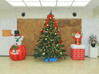 普段はひっそりとした噴水もこの時ばかりはたとえようがないほど美しく彩られます。玄関ホールにも3mを超える巨大なクリスマスツリーが登場し、外来棟2階のウッドデッキには“瀬田の森”をイメージした動物たちのイルミネーションを実施しております。是非、夢のひとときをお楽しみください。