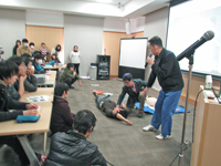 相見准教授による講演では、「想像力と創造力」と題して課外活動における危険回避等について、参加した学生が意見を出し考える内容で行われました。