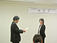 閉講式では、本学医学部附属病院副病院長・滋賀県がん診療連携協議会研修調整部会長の村田喜代史先生より受講者へ修了証書を授与されました。
