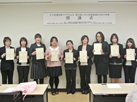 今年度が初回で、県内病院、訪問看護ステーションより9名が受講しました。12科目の講義と県内がん診療拠点病院で7日間の実習を行う研修プログラムになっています。