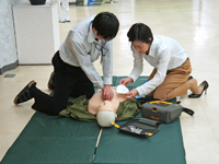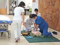 平成27年3月30日(月)17時から、病院玄関ホールにおいて「50歳くらいの女性が倒れた」という設定でコードブルーの訓練を行いました。